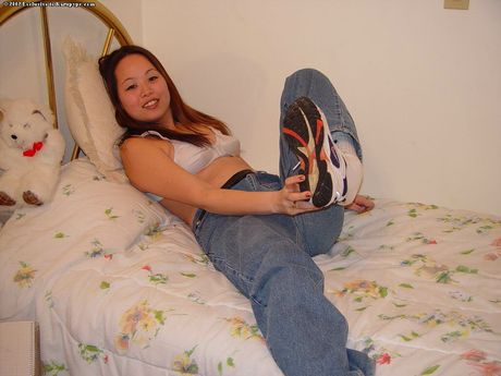 Sweet Heart Video: Tempting japanese brunette milf Mika Tan in sexy jeans reveals big titties and bald pussy