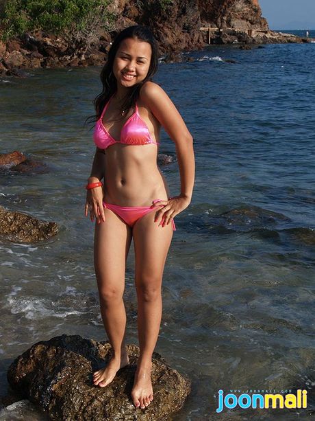 Joon Mali: Thai teen Joon Mali unties her sexy hot pink bikini outside