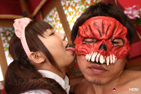 Japan HDV: Uniformed Japaanese cutie Mahiru Tsubaki sucks two dicks with joy