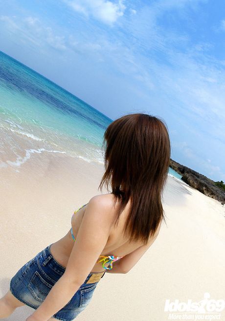 Idols 69: Very attractive japanese young Chikaho Ito in fancy bikini exhibiting tiny tits and sexy ass at beach
