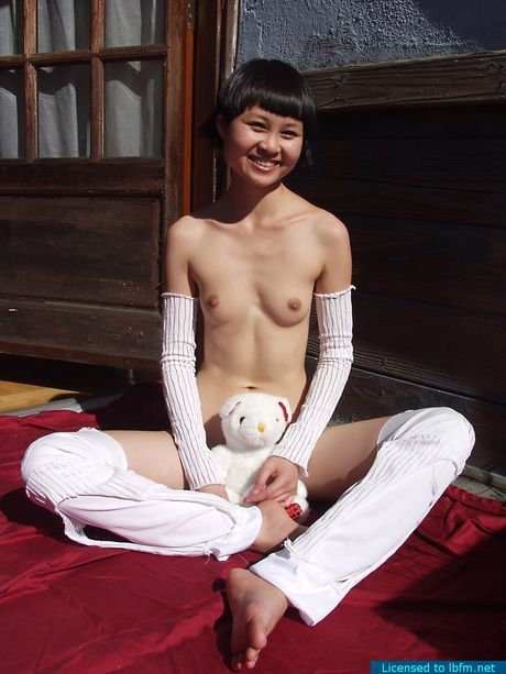 Little Brown Fucking Machines: Young Angel strips outdoors and spreads her legs to warm up her yummy bald pussy