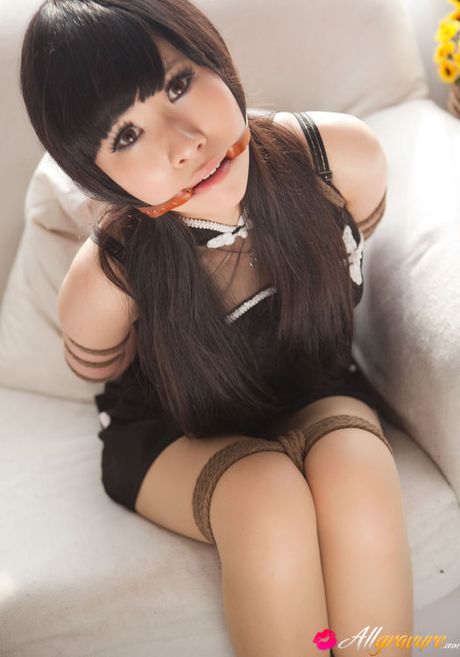 All Gravure: Yuko Asian in heels and cute dress has hands tied of her boobs